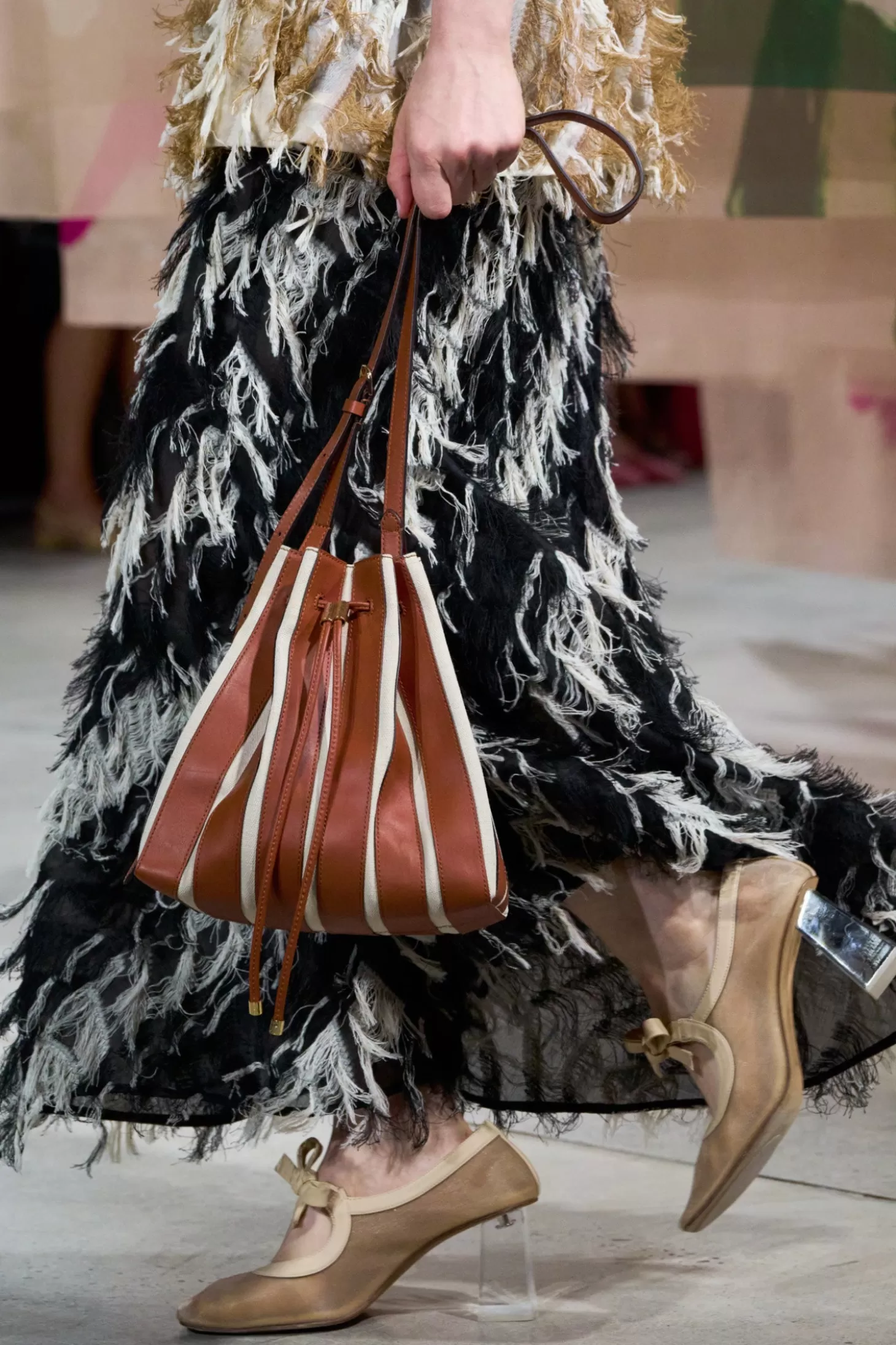 Featured on our Spring/Summer 2025 runway, the Alma Bucket is a wear-with-anything essential, molded from canvas with contrasting stripes in smooth calfskin. This pleated brown and ecru lovely has a drawstring top, an interior pocket to fit your phone, and an adjustable strap for shoulder or crossbody wear.