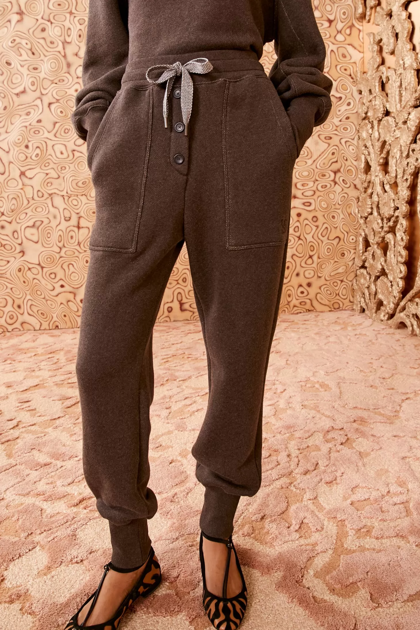 Our Winona Pant is made from our new looped-back fleece, a luxurious knit made from organic cotton. This brown essential has a comfy, drawstring waist with button detailing and deep pockets. Coordinate with our Lumi Pullover for sportif elegance.