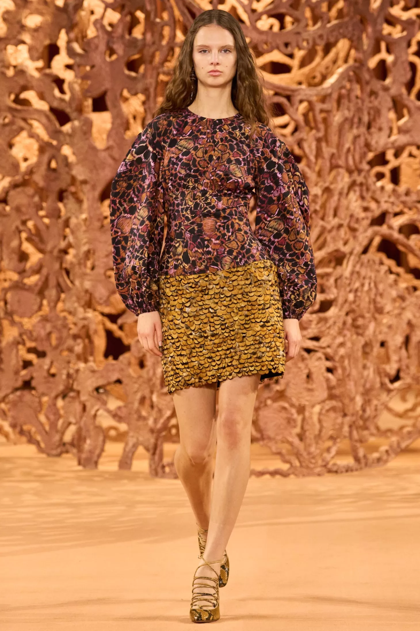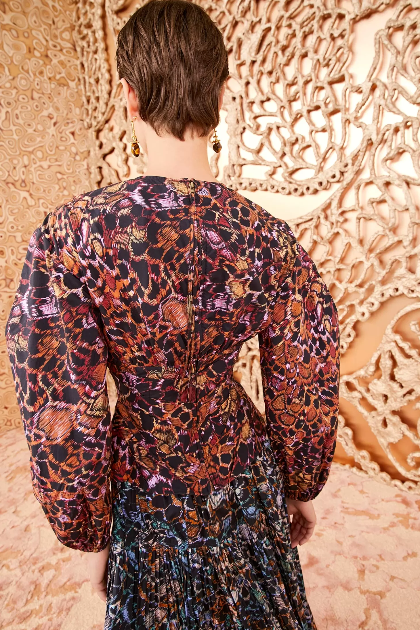 Featured in Look 5 of our Autumn/Winter ‘24 runway show, the Celie Blouse arrives in our signature cotton poplin adorned with a swirling feather pattern highlighted by jewel tones that bring vibrancy and dimension to the print. It has a round neckline and billowing sleeves balanced by a fitted waist for a flattering fit. This beauty fastens with a center-back zipper.
