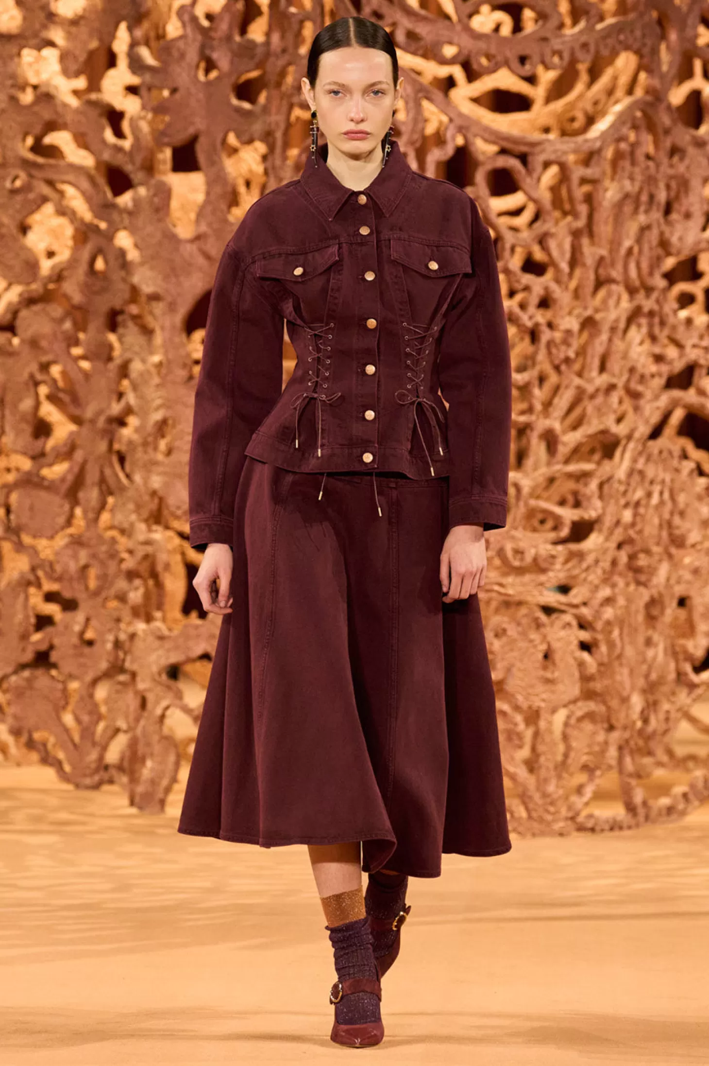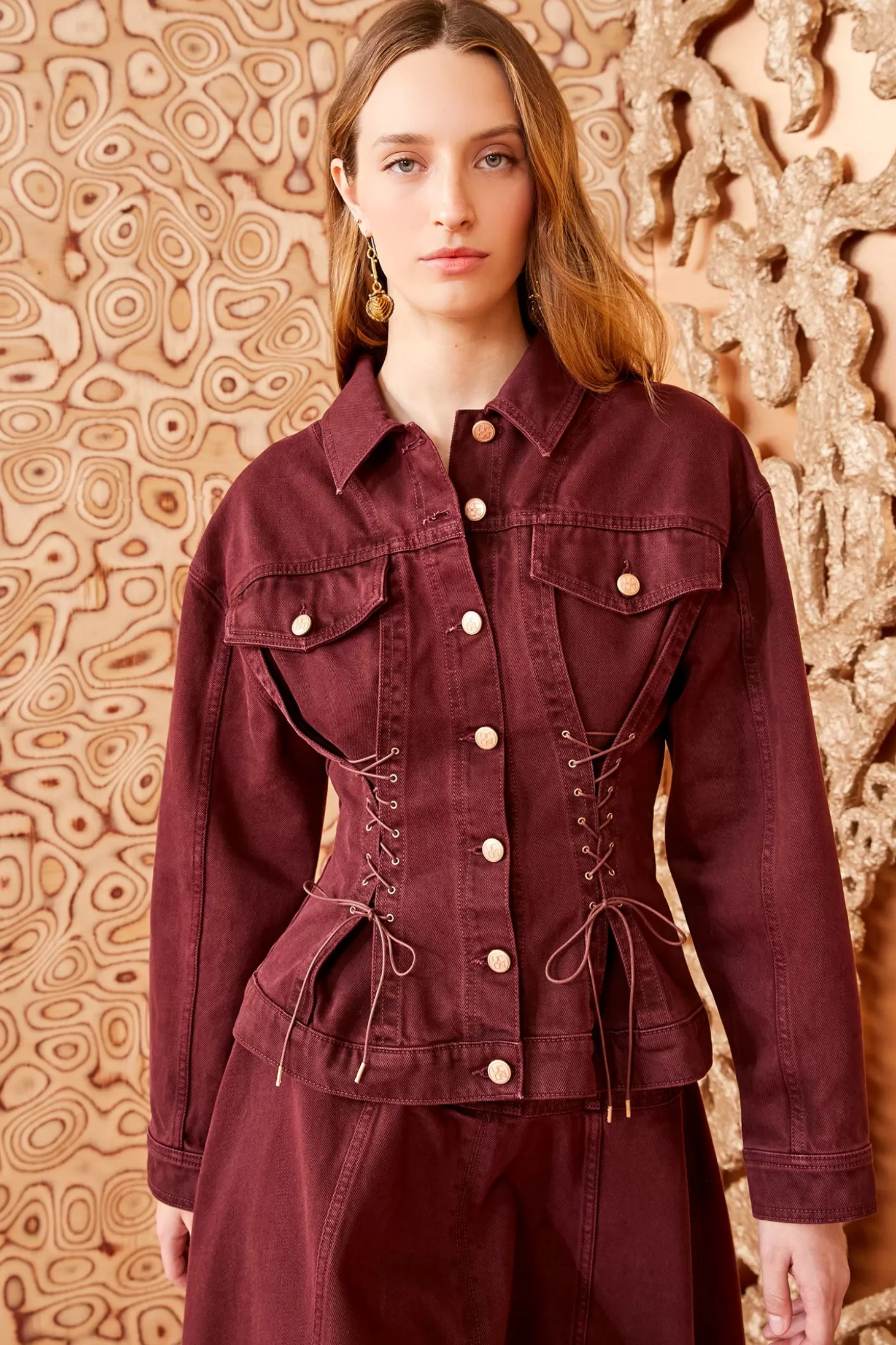 Featured in Look 6 on our Autumn/Winter ‘24 runway, the Naomi Jacket is a new denim silhouette inspired by our beloved Odette Jacket and updated with lace-up detailing that nods to corsetry techniques and accentuates the form. Masterfully handcrafted in Los Angeles, this long-sleeve style has voluminous sleeves and arrives in a deep claret red that’s carefully sanded and then washed for a lived-in feel.