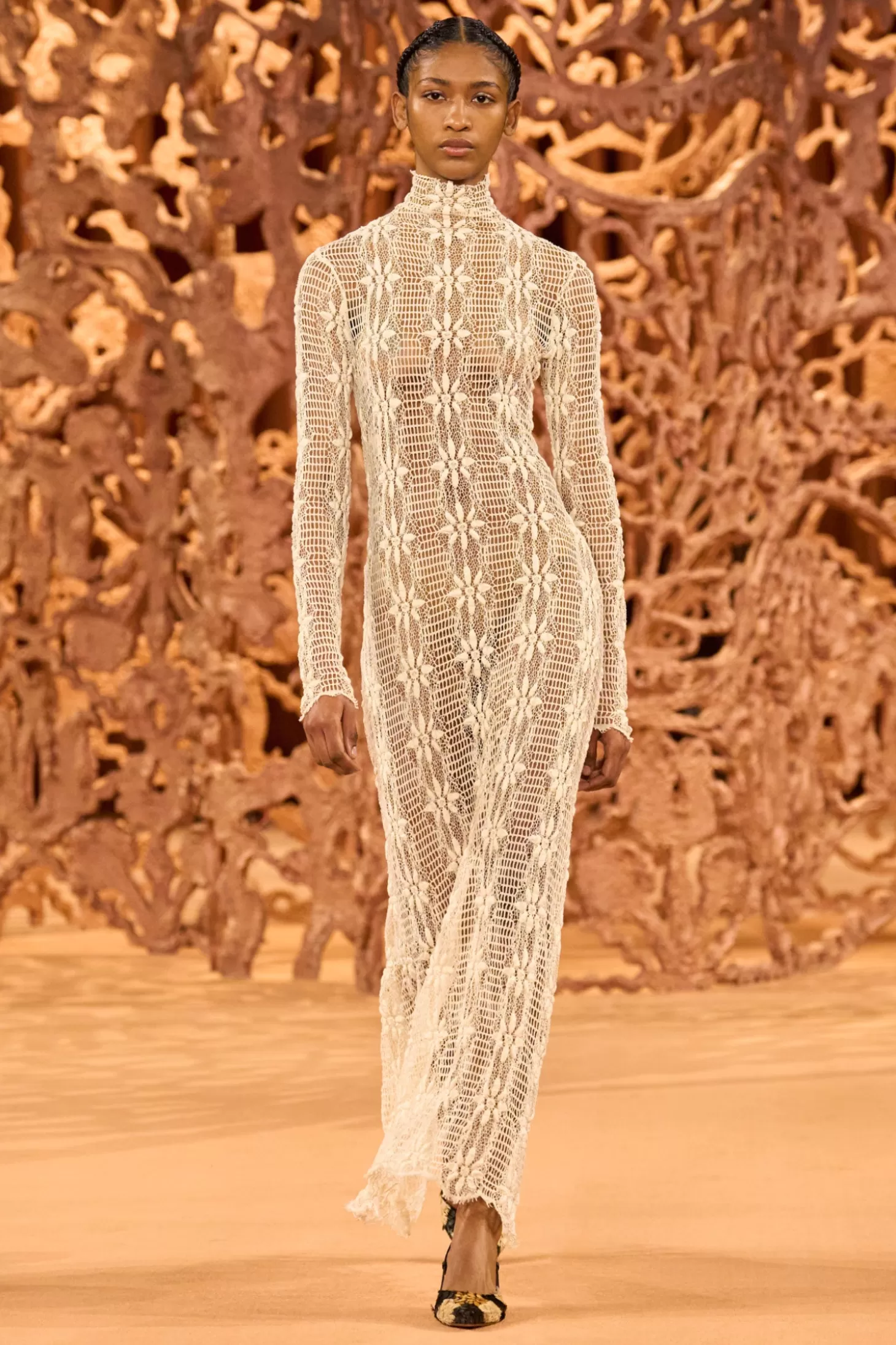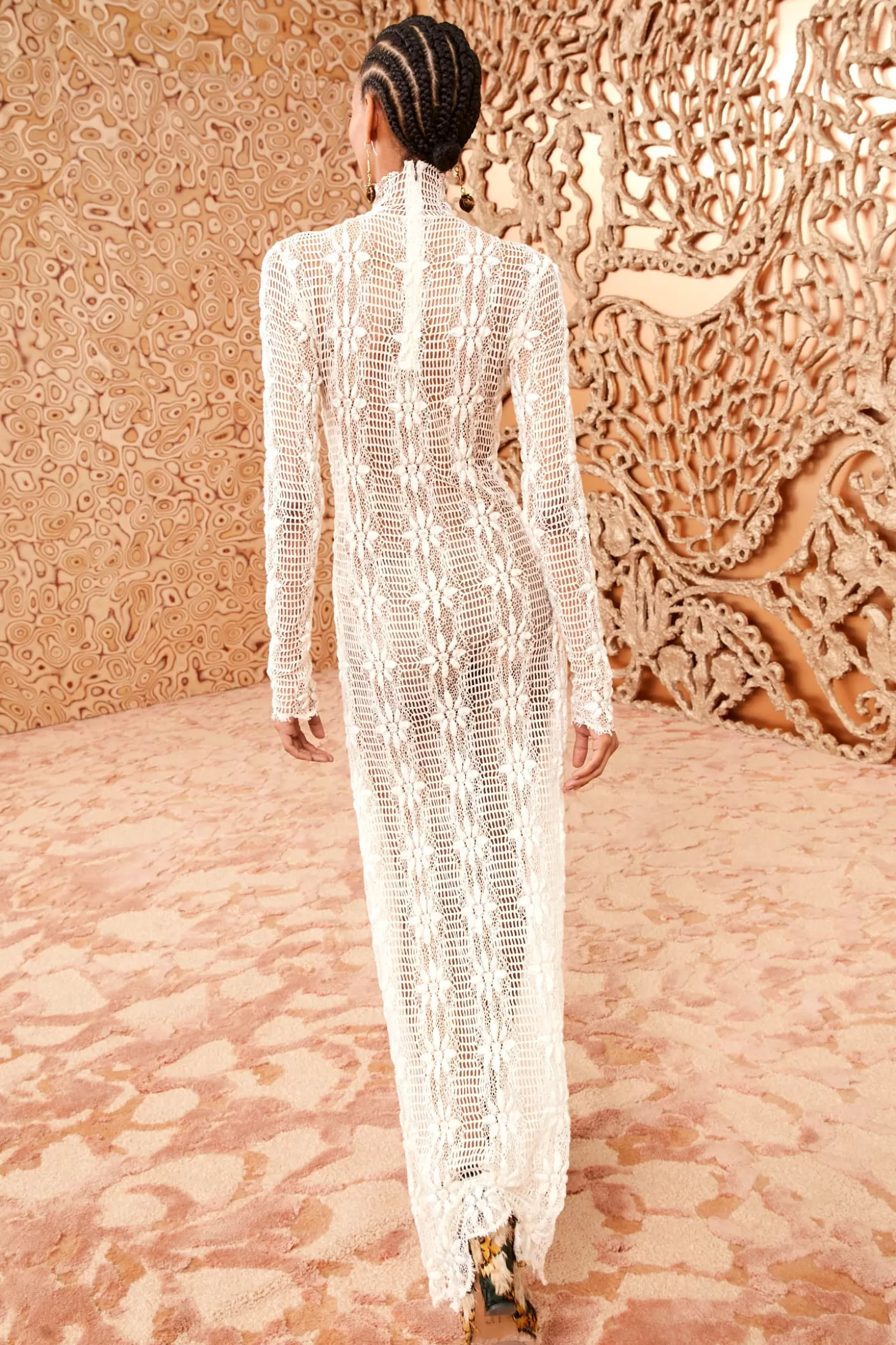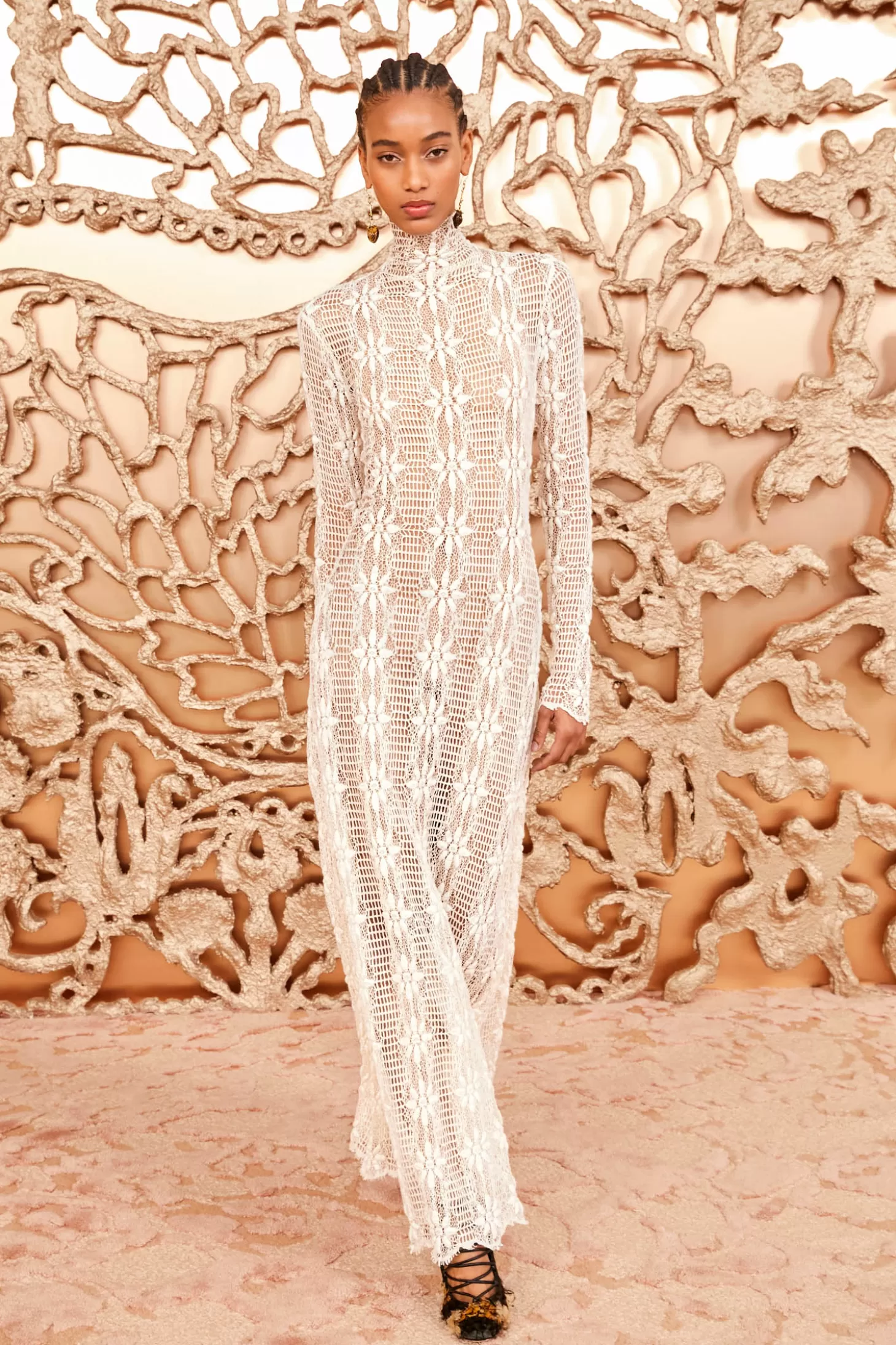 Debuting in Look 35 on our Autumn/Winter 2024 runway, the Talia Dress is expertly crafted from stretch Italian cotton lace with cascading floral motifs adorning its lengths. This richly textural beauty features a mesh background, an elegant high neckline, and has a body-skimming fit with delicate scalloping at the hem. This long-sleeve white dress has a removable slip and fastens with a concealed back zipper.
