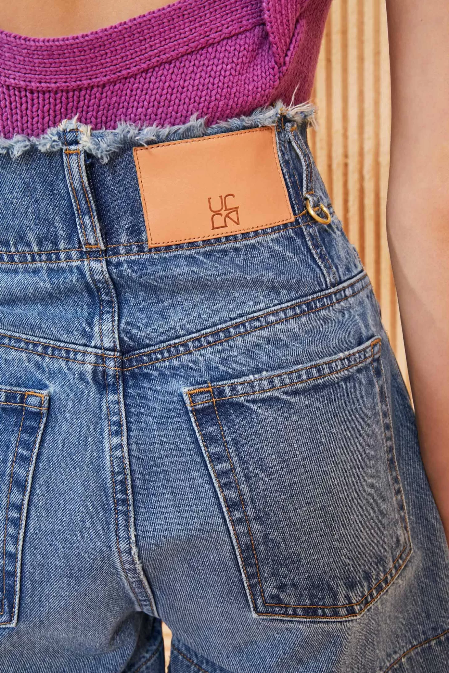 The Charlotte Short is the perfect novelty jean short emerging from our premium denim line. Designed with a high-rise waistband, this medium indigo wash short has darts at the front and back to allow for extra volume throughout the leg opening. Featuring a leather logo-embossed waistband patch, a hand-hammered ring attached to the back belt loop, and finished with a frayed waistband and hem. Inseam: 3 3/8 inches.