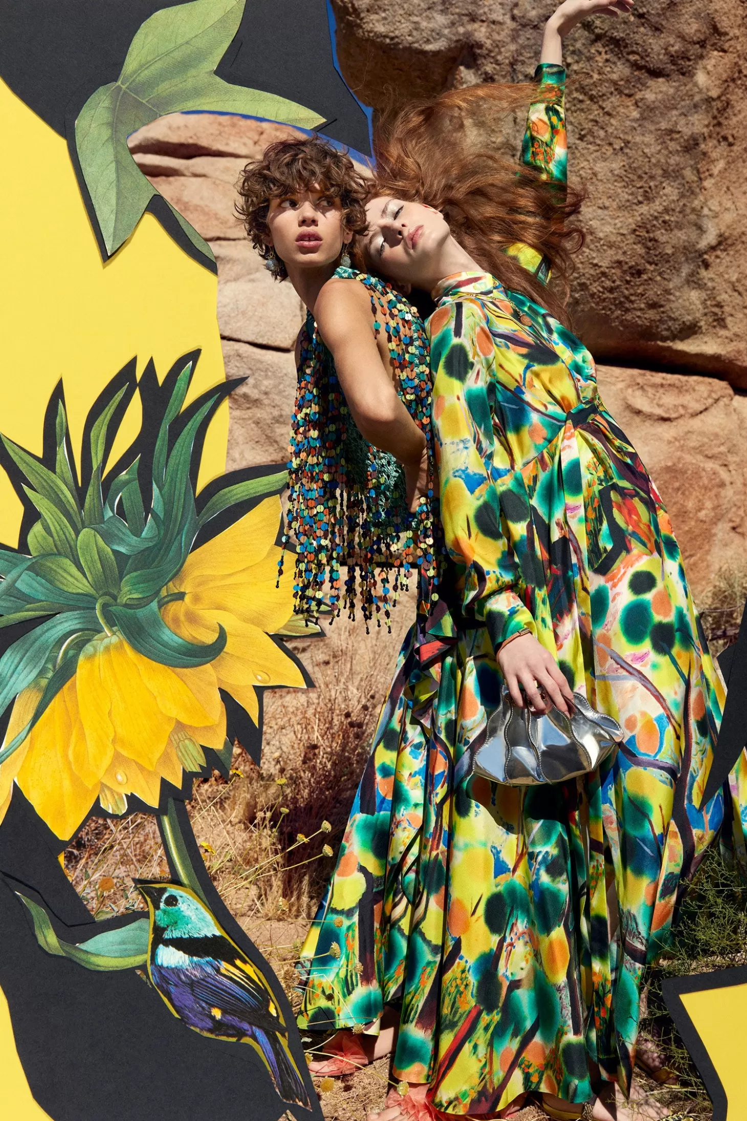 Featured in Look 54 of our Spring/Summer ‘24 Runway Show, our limited-edition Lorena Dress marks our first-ever painter collaboration with Brooklyn painter Shara Hughes, whose breathtaking 2018 landscape “Ignoring the Present” is translated across our luxurious silk twill. Elegantly oversized, this flowy shirt dress has vibrant shades of yellow, green, and blue, and has a full midi silhouette with waist ties you can fasten or leave undone. It has a center-front button placket.