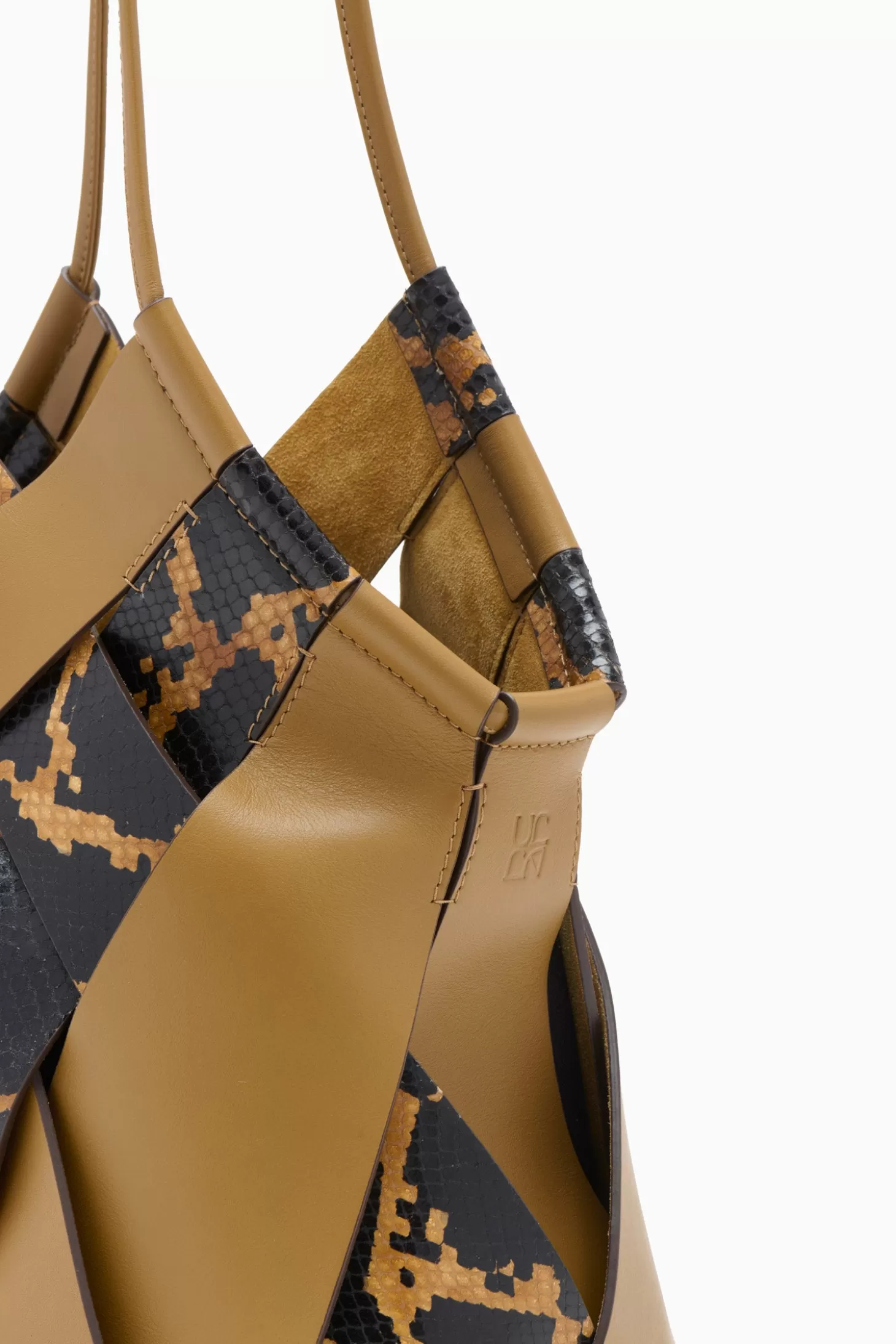 Spotlighted throughout the Spring/Summer 2025 runway, our new Charlotte Large Tote is intricately woven from a luxe combination of smooth and python-embossed leather, beautifully abstract and designed with tubular shoulder straps for comfortable wear. It features an open top and has a generous interior that’s lined in cotton twill to keep your essentials secure.