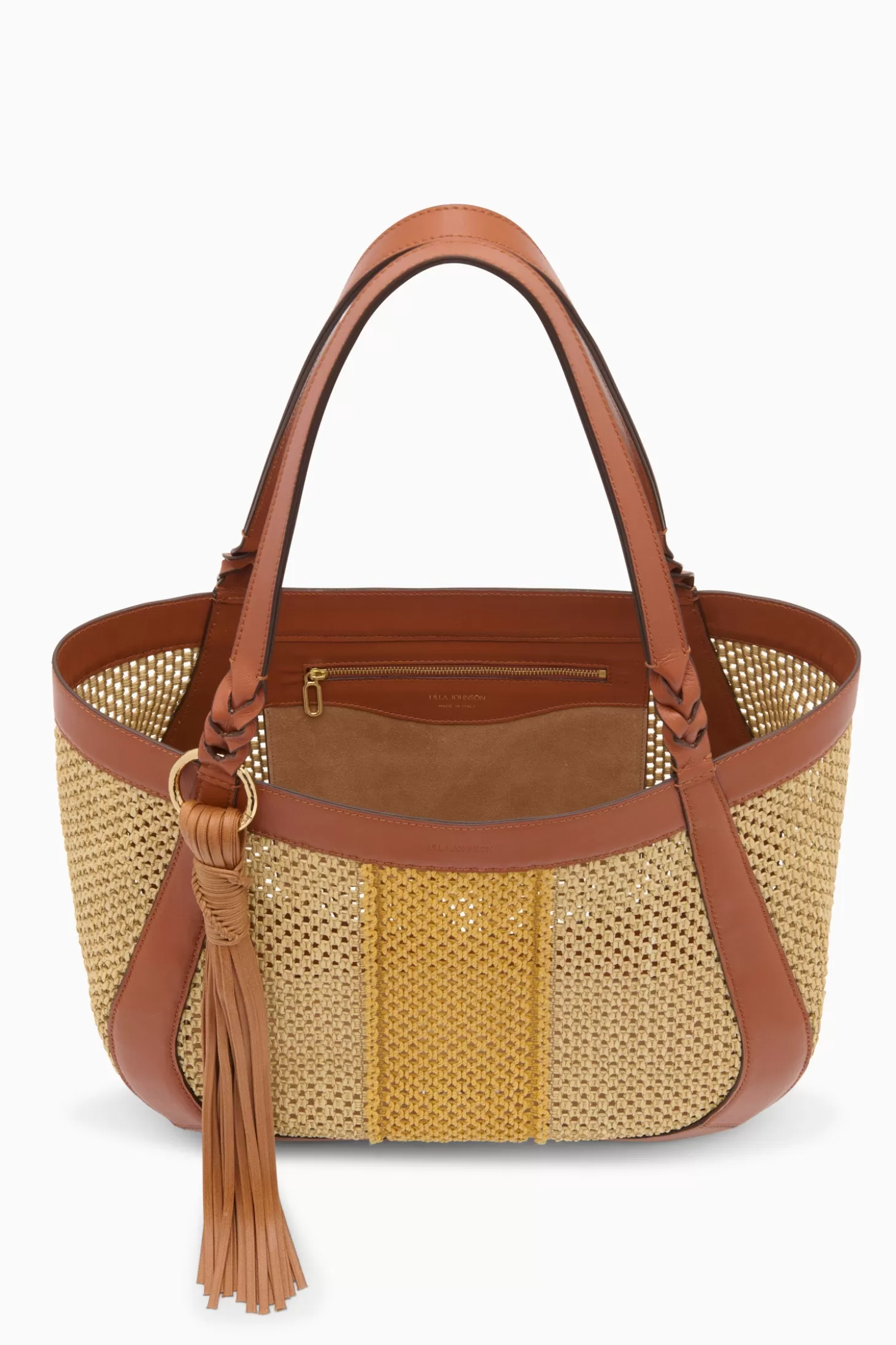A forever favorite and Ulla’s trusted traveling companion, the Albers Tote is handcrafted in Italy from buttery calfskin leather in a gorgeous combination of raffia net and supple calfskin. This roomy, east-west silhouette has a soft yet structured shape that can stand on its own without collapsing, while the internal pocket cradles your phone for easy access. A hand-macramé tassel, braided handles, and brass hardware add artful finishing touches.