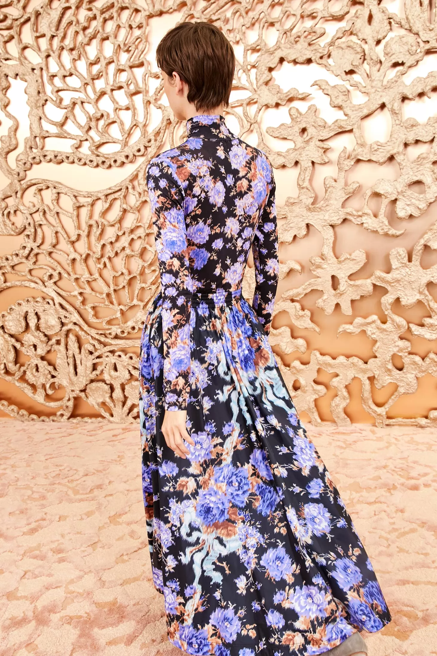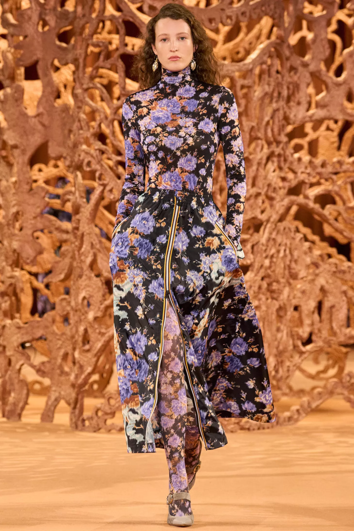 Our collaboration with outerwear authority K-Way explores our signature florals reimagined in unexpected ways. Featured in Look 23 on our Autumn/Winter ‘24 runway, the Rhea Skirt arrives in performance ripstop fabric that’s waterproof and decorated with blurred botanicals in vivid purple. This utilitarian yet playful style has an adjustable elastic waist, side pockets, and K-Way’s signature zipper that fastens through the front. A special logo patch adds an iconic finishing touch.