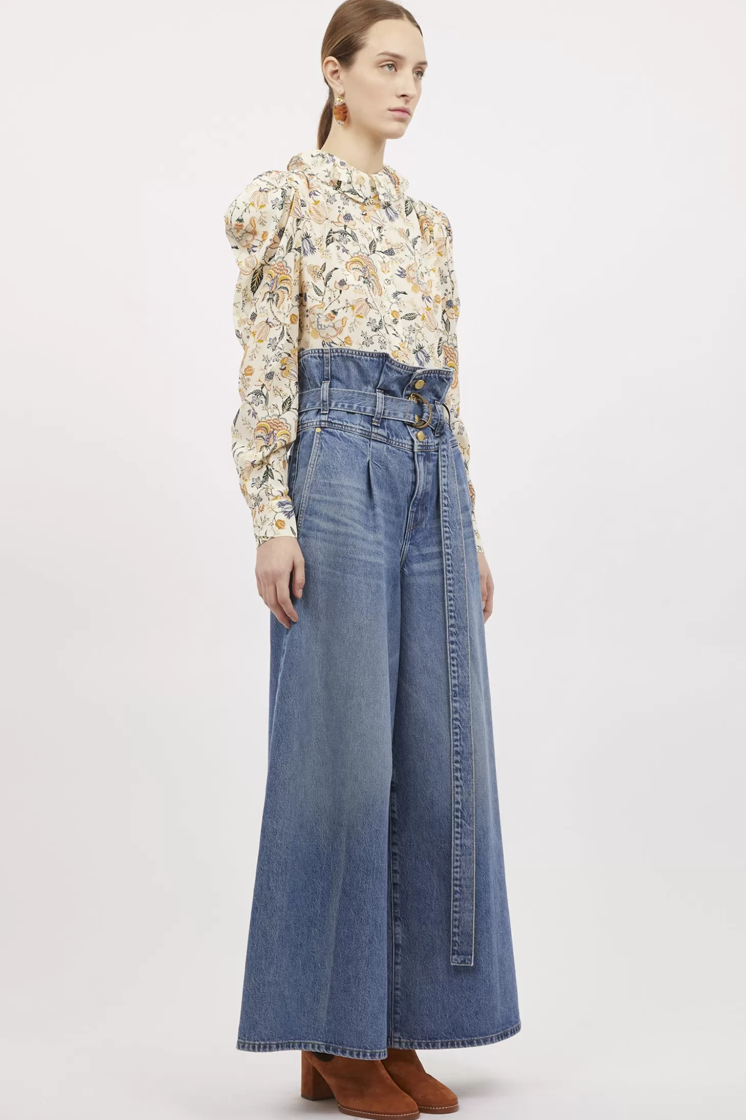 The Sylvan Jean is the latest addition to our premium denim collection. Defined by its ribcage paperbag waist, this jean features a loose-fitting leg that finishes at ankle length. This season we introduce our medium indigo wash, which uses water-saving technology to create a lived-in finish. All of our denim is made in Los Angeles.