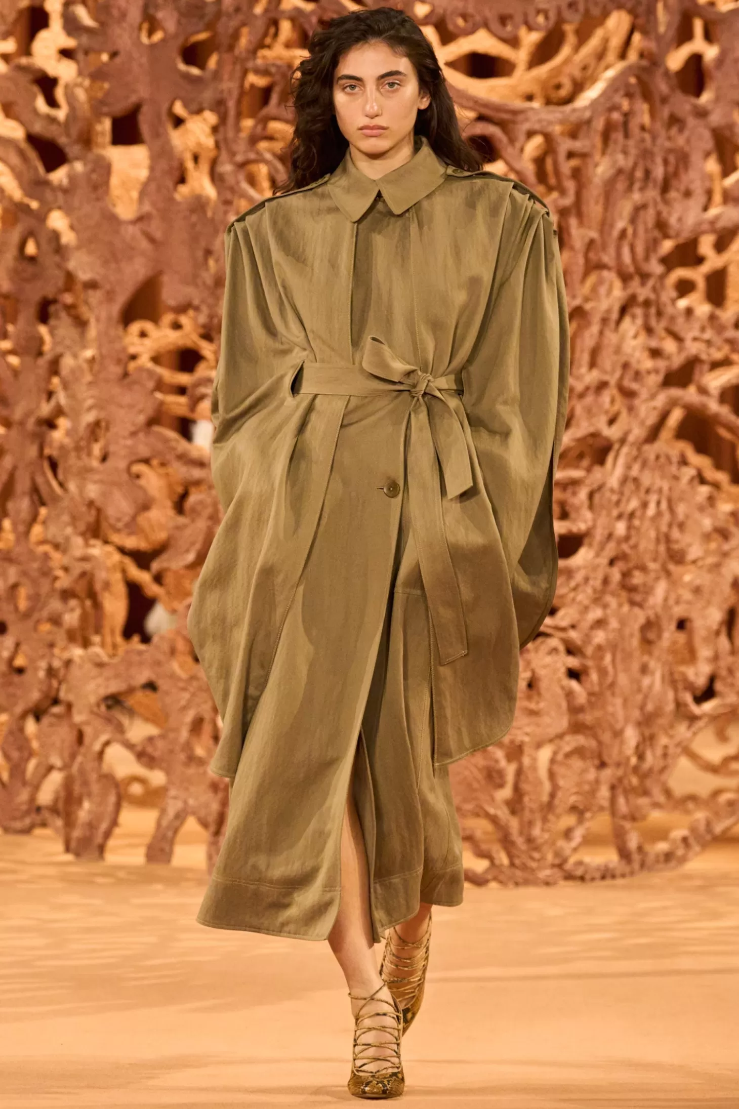 Featured in Look 43 on our Autumn/Winter 2024 runway, the Vedi Coat is a statement layer cut from soft twill suiting in an exploration of the contrast between womenswear detailing and menswear shapes. This dramatic, structural coat features beautifully draped shoulders with a matching tie belt that adds definition to the oversized silhouette. Arriving in a delicate and versatile green hue, it has pockets and fastens with asymmetric buttons through the front.