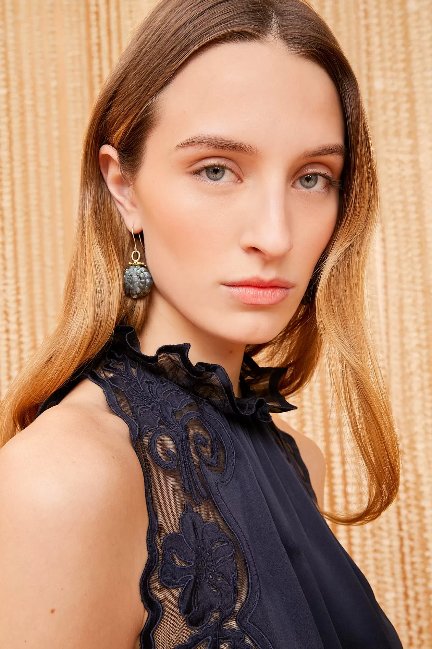 Our Elowen Top is beautifully made from silk charmeuse with tulle panels adorned with tonal floral appliqués. This sleeveless top features an elegant loose silhouette and arrives in deepest Noir. Complete your look with our matching Cressida Skirt.