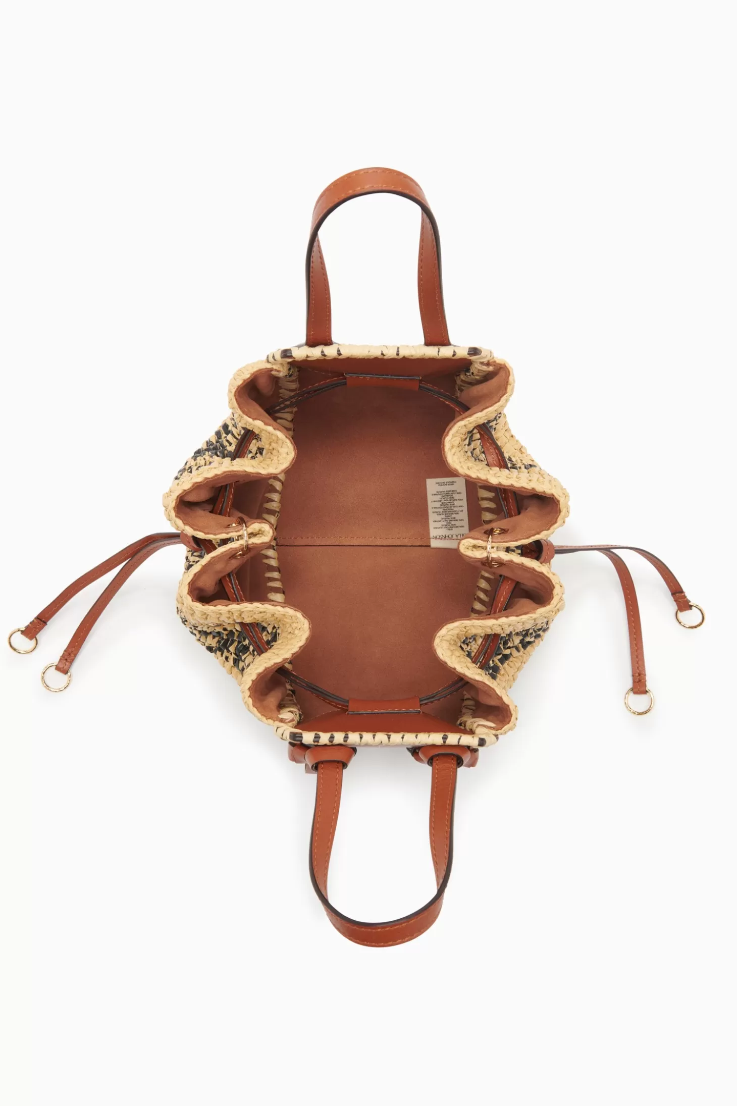 Our bestselling Gio Crossbody is a sumptuous blend of hand-woven raffia and buttery leather with beautifully graphic melange stripes. The drawstring top expands the silhouette and provides space for your essentials, while the adjustable shoulder strap allows it to be worn crossbody. It is lined in suede and is finished with our signature antique brass hardware.
