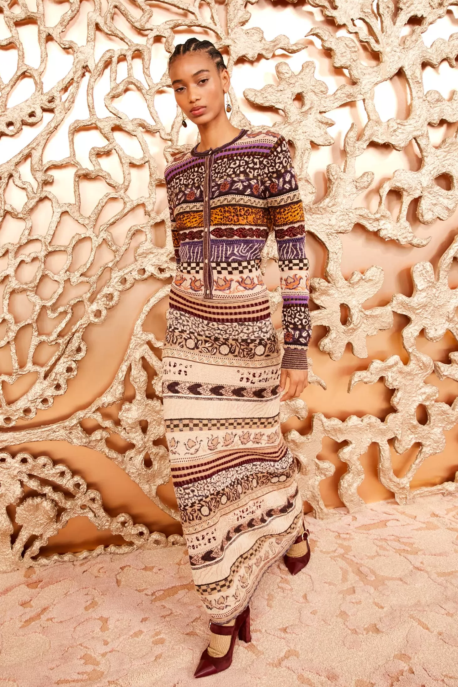 The Helene Skirt is made from Fair Isle jacquard richly detailed with floral and paisley motifs in a playful take on this season’s themes. Made with touches of wool and alpaca, this intricate, cream-based knit is ribbed at the waist for comfort, is mid-weight, and has an elongated midi length. Style with our Liza Cardigan for maximum impact.
