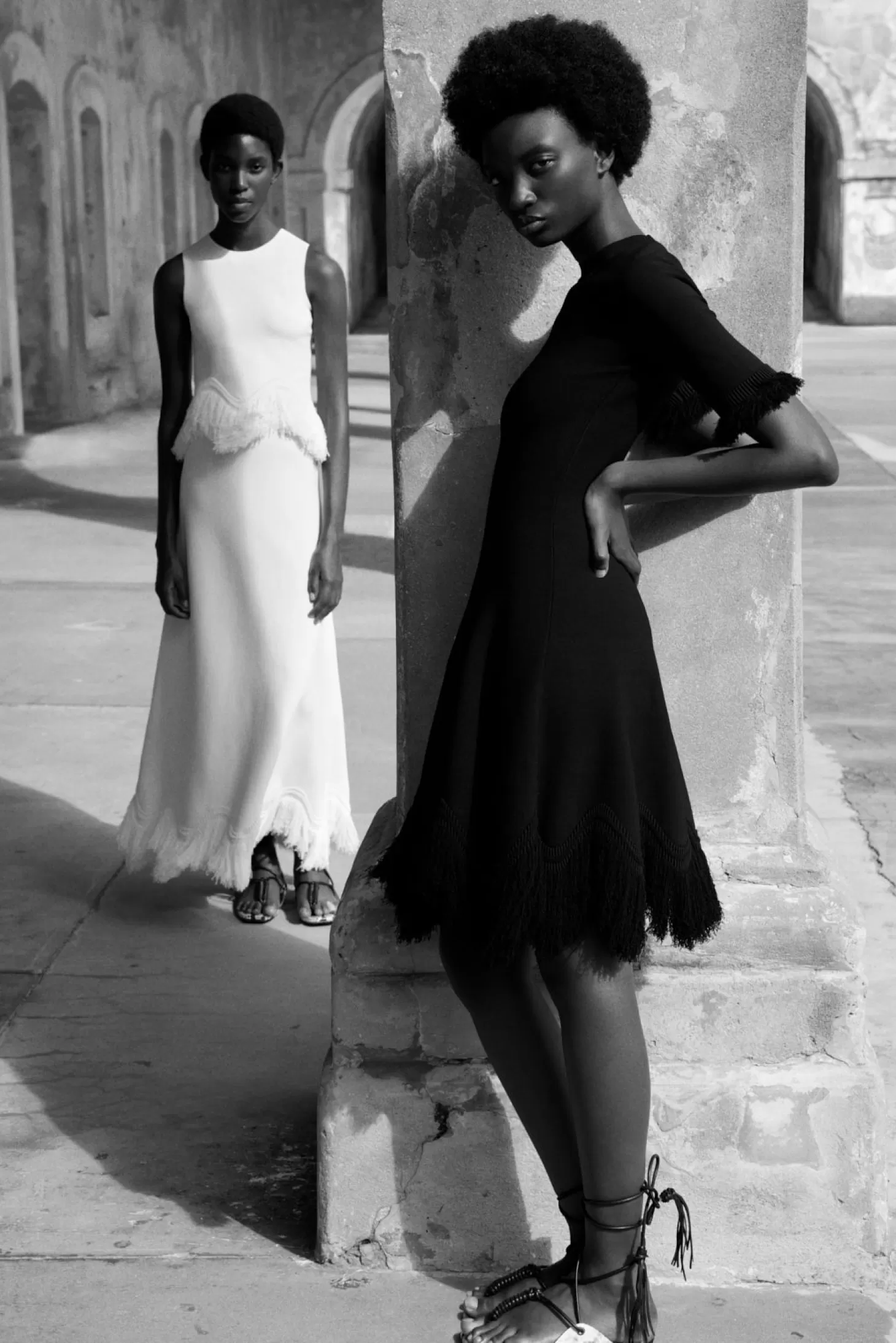 The Vittoria Dress is a new season favorite that effortlessly combines comfort and style. This compact knit mini dress arrives in classic black with hand-cut fringe that adds playful movement and texture, making it a versatile piece for any occasion. It has a round neckline, short sleeves, and unfurls to a knee length.